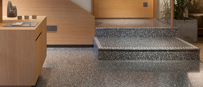 極寵家長沙店坐落在由長沙雨花區城市公園綜合體溪悅薈。旗艦店項目獨棟共三層,總面積約 2000 平米,全店地墻面系統、吧臺、坐凳、異形裝置等全部由立潔水磨石團隊打造。 此項目墻面及隔區裝置采用了大量的異形和弧形整體設計,這對水磨石現場施工是一個極高技術難度的考驗,我司通過專業的產品材料方案及合理的施工工藝方案,成功解決此技術難題,項目完成之后室內外空間呈現整體的原始設計質感,匠心品質把控,色調清新淡雅,營造出客戶需求的極致體驗氛圍,并提供專業后期保養維護方案,獲得客戶高度贊譽。